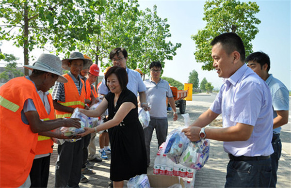 炎炎夏日,酷暑當(dāng)頭,持續(xù)高溫天氣給室外作業(yè)人員帶來(lái)了嚴(yán)峻考驗(yàn)。8月2日上午,園區(qū)黨工委委員、管委會(huì)副主任、開(kāi)發(fā)公司總裁丁琦帶隊(duì)慰問(wèn)了高溫下堅(jiān)守在一線的環(huán)衛(wèi)、物業(yè)保安、施工人員等,為他們送去了礦泉水、毛巾等防暑降溫用品。