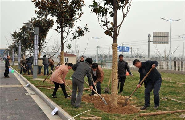 植樹現(xiàn)場,一派熱火朝天的勞動景象,大家熱情高漲、干勁十足,分工協(xié)作,默契配合,定行、鏟土、填坑、澆水,每道工序都進行的十分細致、認真。經(jīng)過一番辛勤勞動,共栽種廣玉蘭40余棵,一行行新栽下的玉蘭樹昂然挺立,在和煦的春風中展現(xiàn)著蓬勃生機。