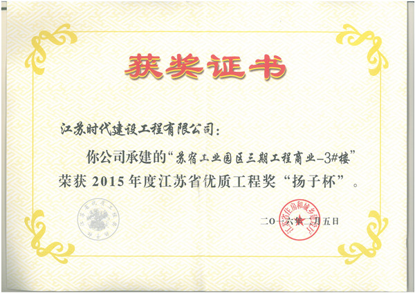 江蘇省“揚子杯”優(yōu)質(zhì)工程獎是我省建設(shè)工程質(zhì)量最高榮譽獎,為省人民政府確定的行政獎勵, 代表了我省當前工程建設(shè)質(zhì)量的最高水平。揚子杯每年評審一次,評選對象為我省境內(nèi)、已經(jīng)建成并投入使用的各類建設(shè)工程。該獎的設(shè)立旨在促進建設(shè)和施工單位提高工程質(zhì)量水平、增強建筑精品意識。