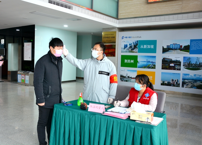 陳紅是公司綜合檔案室副主任,民盟蘇宿園區(qū)直屬支部主委,也是一位10個(gè)月大的寶媽,為全身心投入抗“疫”,想方設(shè)法將婆婆從外地接回身邊照顧孩子。她在做好本職工作的同時(shí),主動(dòng)請(qǐng)纓,要求增援加入蘇宿工業(yè)坊抗“疫”隊(duì)伍,每天在園區(qū)管理樓一樓大廳值守,為大家測(cè)量體溫,進(jìn)行人員出入信息登記,用實(shí)際行動(dòng)為防控貢獻(xiàn)力量。