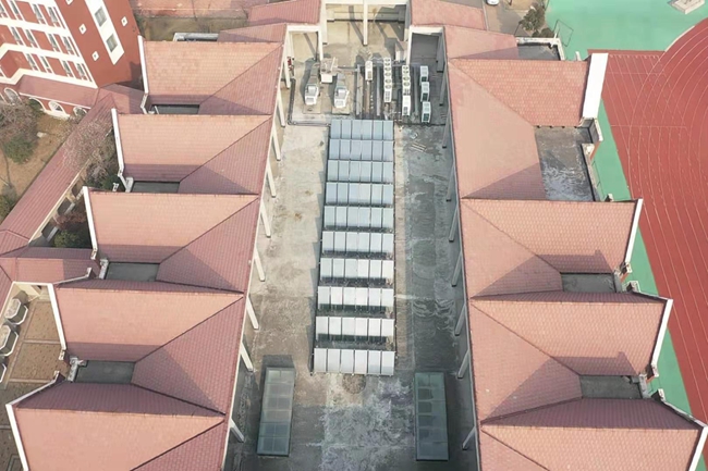 宿蘇外南校區(qū)6號樓改造工程作為園區(qū)首個既有建筑綠色改造項目,建筑面積為4287m2,總投資約160萬元,項目實施過程中,結(jié)合場地實際情況及校方需求,突出綠色節(jié)能,實施較實用的技術措施,主要有屋面太陽能熱水系統(tǒng),室內(nèi)空氣質(zhì)量監(jiān)控與新風系統(tǒng),能耗監(jiān)測系統(tǒng),室外空氣質(zhì)量監(jiān)測系統(tǒng),室外綠化噴灌系統(tǒng)等。