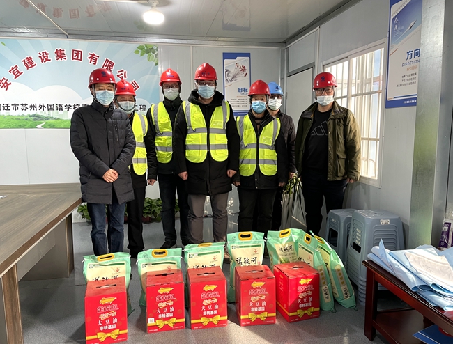 檢查后,在宿蘇外南北校區(qū)擴(kuò)建項(xiàng)目施工現(xiàn)場,房建工程部向堅(jiān)守在一線的工人送去了食用油和大米,叮囑大家注意春節(jié)期間安全和疫情防控并表達(dá)了新春祝福,祝愿大家過一個(gè)平安祥和的春節(jié)。