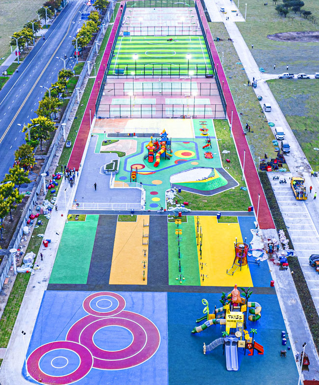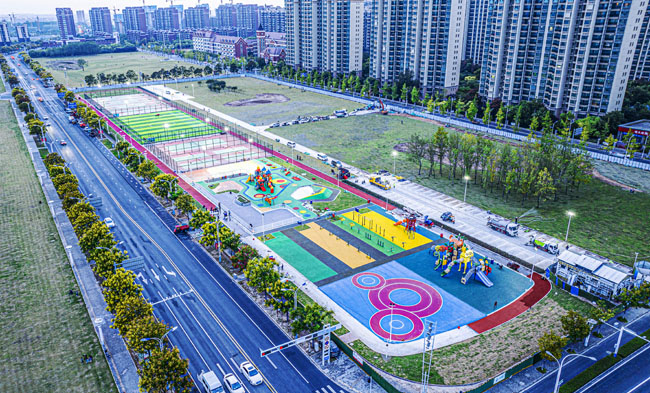 該項(xiàng)目所處位置原為一處待開(kāi)發(fā)地塊,園區(qū)根據(jù)居民需求規(guī)劃建設(shè)健身跑道、全齡段健身區(qū)、綜合兒童活動(dòng)區(qū)、平地輪滑場(chǎng)、廣場(chǎng)舞片區(qū)和各類(lèi)球場(chǎng)(其中羽毛球四組、網(wǎng)球場(chǎng)一組,7人制籠式足球場(chǎng)一組、籠式籃球場(chǎng)四組),同步建設(shè)公廁、停車(chē)場(chǎng)等配套設(shè)施。