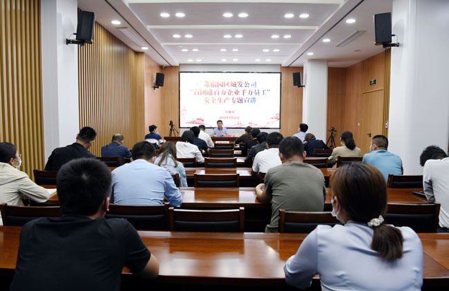 為深入習(xí)近平總書(shū)記關(guān)于安全生產(chǎn)的重要論述和指示批示精神、安全生產(chǎn)“十五條”硬措施、新《安全生產(chǎn)法》以及安全生產(chǎn)大檢查、重點(diǎn)行業(yè)領(lǐng)域安全生產(chǎn)百日攻堅(jiān)行動(dòng),認(rèn)真落實(shí)全省“百團(tuán)進(jìn)百萬(wàn)企業(yè)千萬(wàn)員工”安全生產(chǎn)宣講活動(dòng)的安排部署。9月23日下午,宿遷市蘇宿工業(yè)園區(qū)城市發(fā)展投資有限公司董事長(zhǎng)劉建華作安全生產(chǎn)專題宣講。