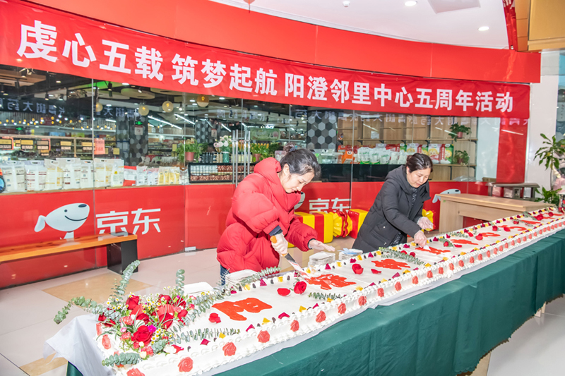 為感恩廣大新老客戶和商戶,1月18日,公司開展陽澄鄰里中心五周年巨型蛋糕免費(fèi)品嘗活動(dòng),不到2小時(shí),6米巨型蛋糕就被分享完畢,領(lǐng)到蛋糕的家人和顧客朋友們都洋溢著滿滿的開心和幸福。