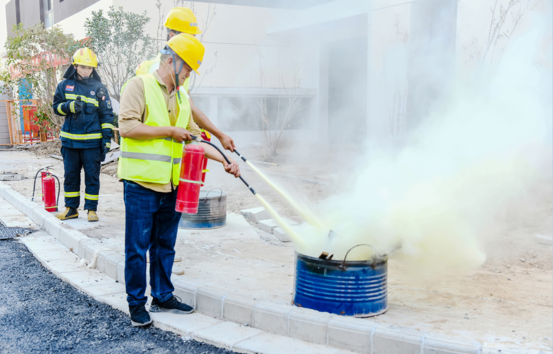 演練結束,園區(qū)消防救援大隊對火災應急疏散過程中存在的問題進行一一點評,演示了滅火器的使用方法,為現(xiàn)場工人科普了消防知識,邀請現(xiàn)場人員參與滅火體驗。