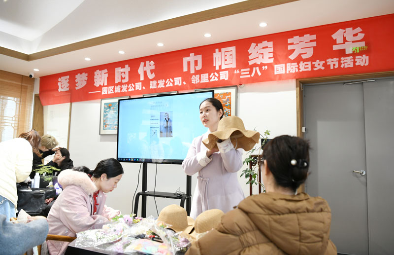 在手工制作環(huán)節(jié),女職工們化身“匠心設(shè)計師”,運用絲帶、花草等材料精心制作專屬禮帽。現(xiàn)場學(xué)會運用各自的創(chuàng)意巧思,呈現(xiàn)出風(fēng)格各異的作品。