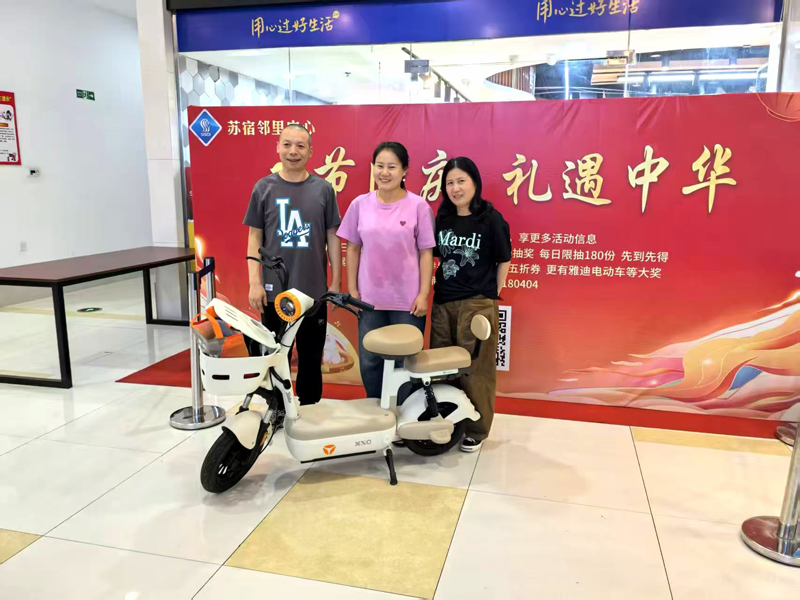 本次消費兌好禮活動覆蓋整個黃金周,顧客憑當日消費滿76元憑證即可參與。抽得價值1800元的雅迪電動車大獎的幸運顧客王女士激動地表示:“沒想到在鄰里中心能中這么大的獎,這個假期過得真的特別有意義!”此外,包括品牌培訓商戶精品課程五折券、品牌小家電、放健身五折券及千元購物券等在內的數千份獎品也各歸其主,活動圓滿結束。