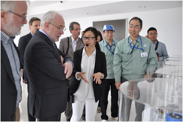 在尼吉康公司,南出智嗣董事長仔細(xì)為代表團(tuán)介紹了企業(yè)發(fā)展歷史、產(chǎn)品性能等情況,并饒有興趣地交流起各自的工作、生活。日語、德語、英語、中文夾雜在一起,加上雙方豐富的肢體語言,熱烈不已。南出董事長說,很享受在宿遷的工作、生活,每天在園區(qū)都可以品嘗到可口的日本料理,周末可以到市區(qū)品嘗星巴克,味道很不錯(cuò)。他還熱情邀請羅特先生一起品嘗。羅特對(duì)尼吉康公司的熱情接待表示感謝,他表示,此次園區(qū)之行雖然時(shí)間短暫,但給他留下了尤為深刻的印象,期望南出董事長等到德國做客。