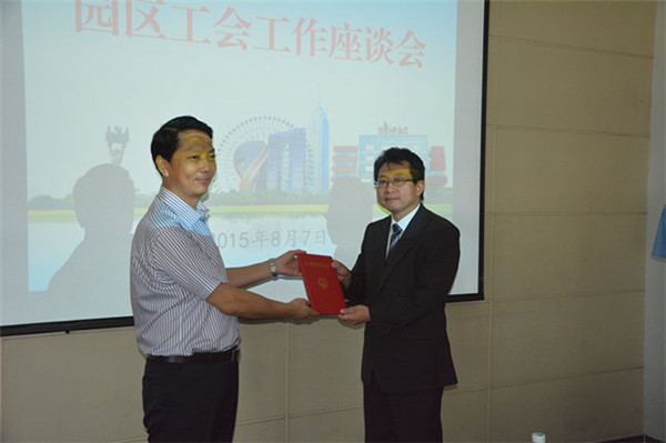 會議通報了上半年園區(qū)工會工作目標(biāo)完成情況,對獲得2015年度“江蘇省工人先鋒號”、“江蘇省五一勞動榮譽獎?wù)隆焙蜆s獲2014年度全市“安康杯”競賽先進集體和個人進行了頒獎。