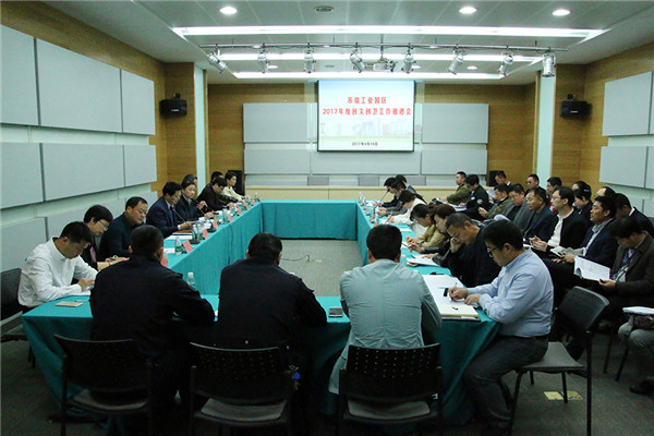 近日,園區(qū)召開2017年度創(chuàng)文創(chuàng)衛(wèi)工作推進(jìn)會,工委領(lǐng)導(dǎo)戈亮、許紹杰出席會議并講話。園區(qū)五城同創(chuàng)指揮部、創(chuàng)文工作領(lǐng)導(dǎo)小組全體成員,園區(qū)各局辦綜合處負(fù)責(zé)同志,園區(qū)各建筑工地負(fù)責(zé)人,各住宅小區(qū)物業(yè)公司負(fù)責(zé)人參加會議。
