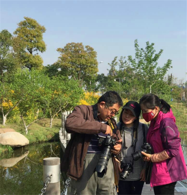 課外,攝影專業(yè)老師指導(dǎo)學(xué)員在園區(qū)蘇州公園、碧桂園等地進行攝影采風(fēng)。